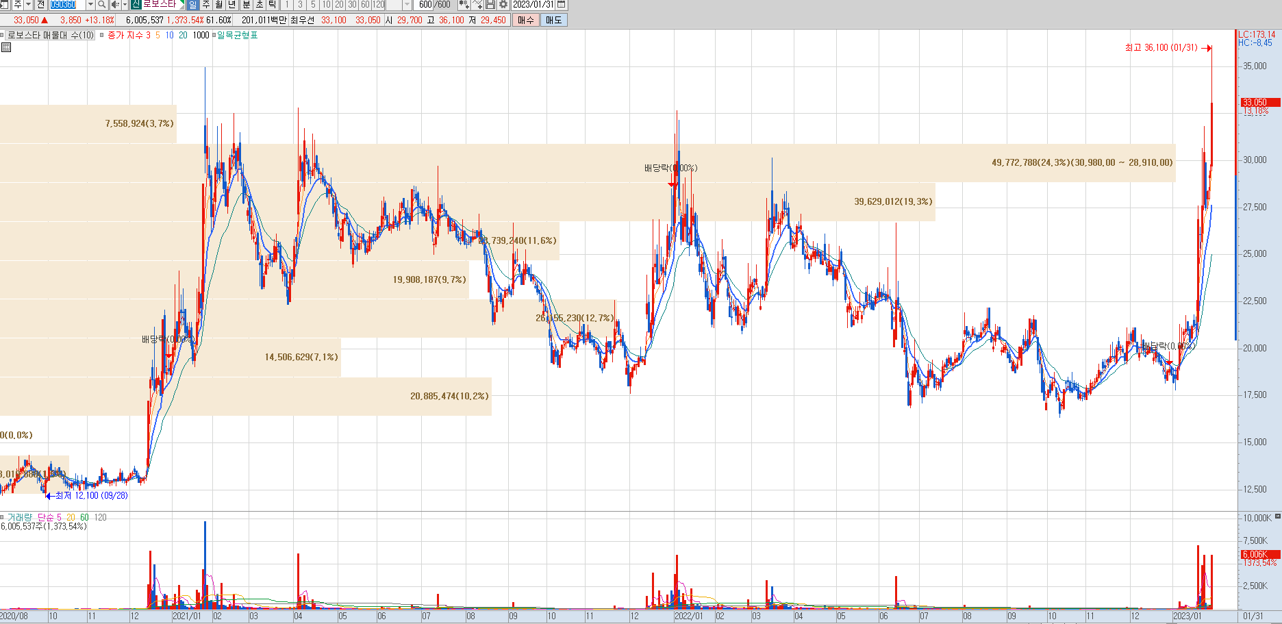 - 상승 이유 : 국내 로봇사업 확대 기대감 속 AI 테마 상승, 바닥권, 저시총주